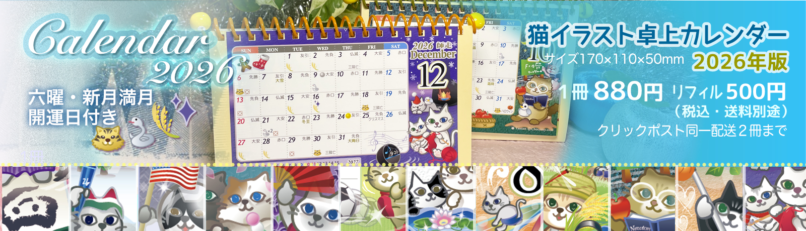 猫イラストカレンダー卓上 2026年版